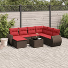 vidaXL 7-delige Loungeset met kussens poly rattan grijs