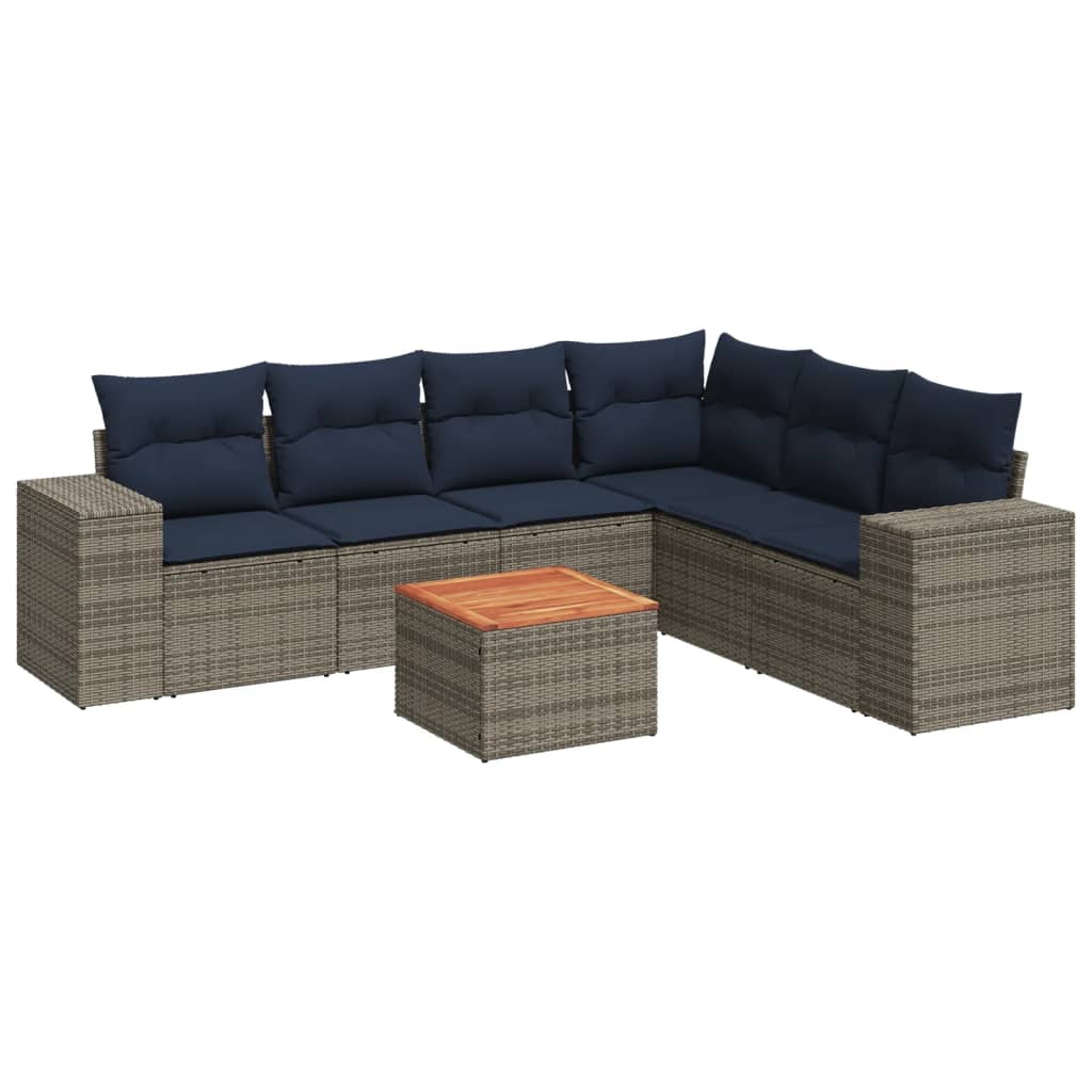 vidaXL 7-delige Loungeset met kussens poly rattan grijs