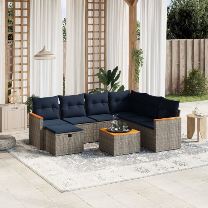 vidaXL 7-delige Loungeset met kussens poly rattan grijs