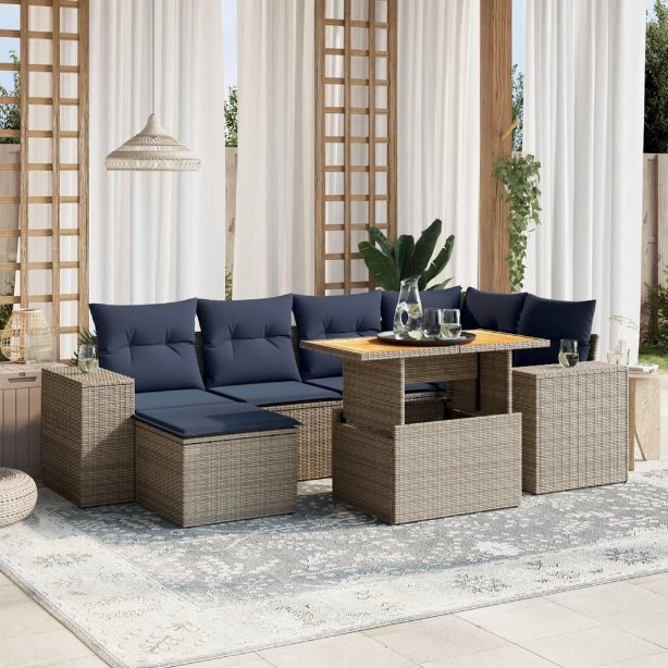 vidaXL 7-delige Loungeset met kussens poly rattan zwart
