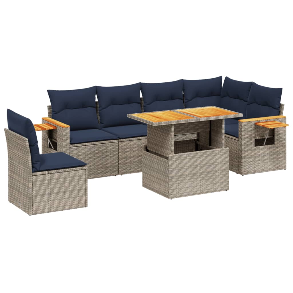 vidaXL 7-Piece Lounge Set with Cushions Poly Rattan Black