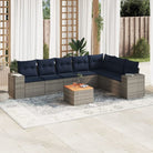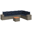 vidaXL 8-delige Loungeset met kussens poly rattan grijs