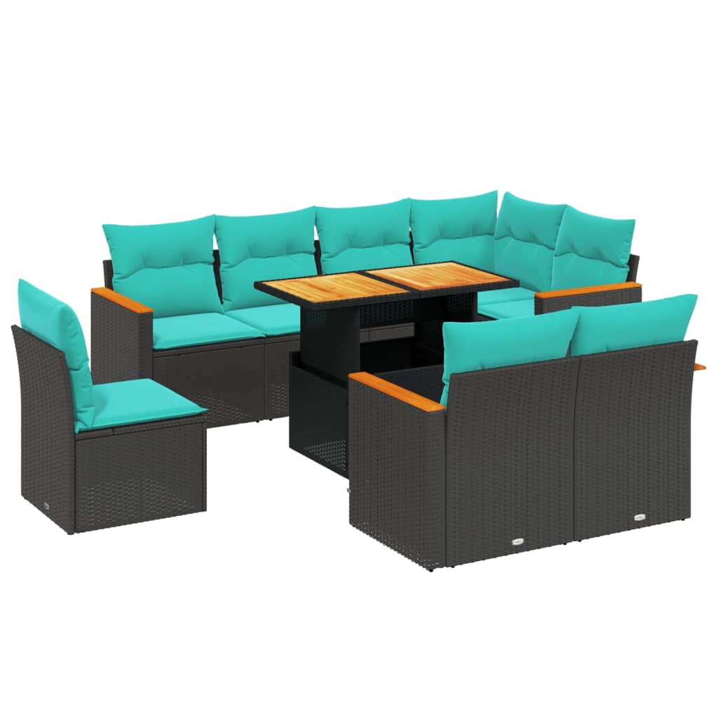 vidaXL 9-Piece Lounge Set with Cushions Poly Rattan Grey
