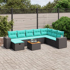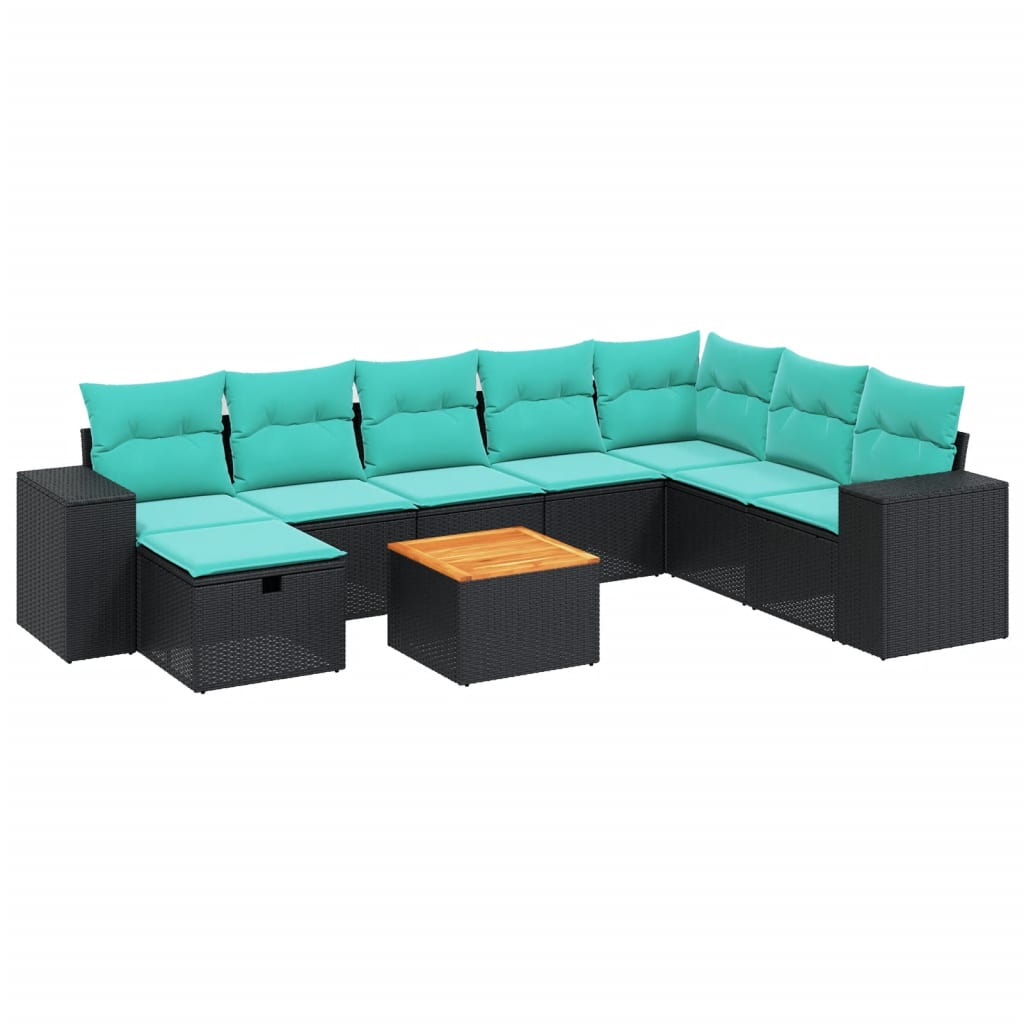 vidaXL 9-delige Loungeset met kussens poly rattan zwart