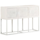 De bijzetkast is gemaakt van massief mangohout, een tropisch hardhout dat veel gewicht kan dragen. Het is ook bestand tegen slijtage, waardoor de kast stabiel en duurzaam is. Het gepoedercoat ijzeren frame biedt extra stabiliteit. Deze kast heeft 3 deuren die voldoende opbergruimte bieden. Het stevige houten blad kan gebruikt worden voor het plaatsen van decoratieve voorwerpen, zoals fotolijsten en potplanten.