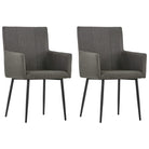 vidaXL Dining Chairs 2 pcs with Armrests Fabric Brown
