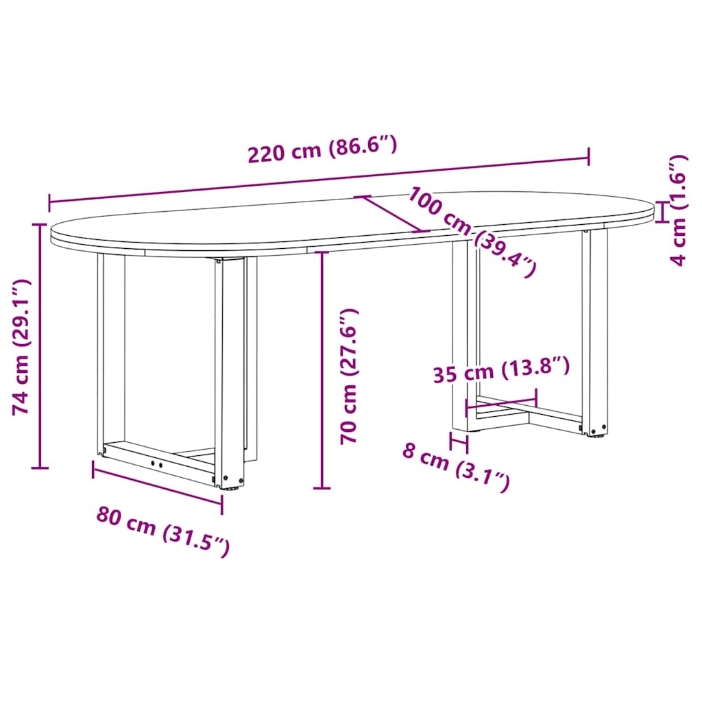 vidaXL Eettafel 220x100x74 cm ovaal massief eikenhout lichtbruin