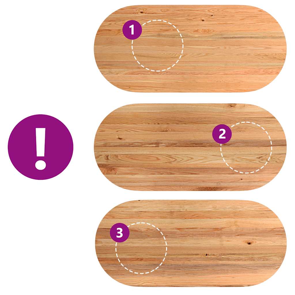 - Noesten en kleine gebreken zijn opgevuld met zwart vulmateriaal om een mooi en glad tafeloppervlak te geven. Raadpleeg de afbeeldingen voor voorbeelden.