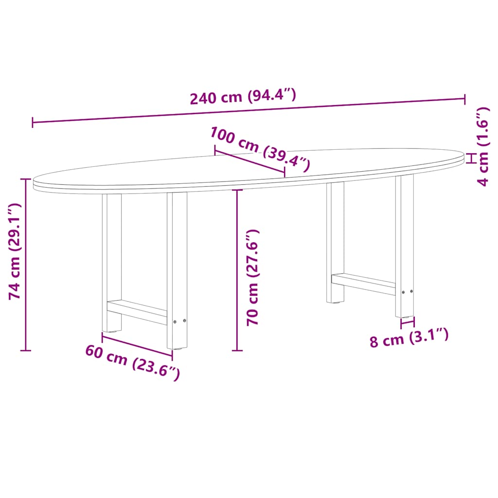 vidaXL Eettafel 240x100x74 cm ovaal massief eikenhout lichtbruin
