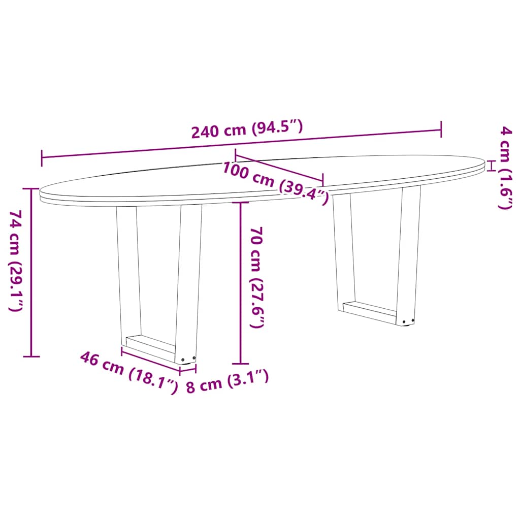 vidaXL Eettafel 280x120x74 cm ovaal massief eikenhout lichtbruin