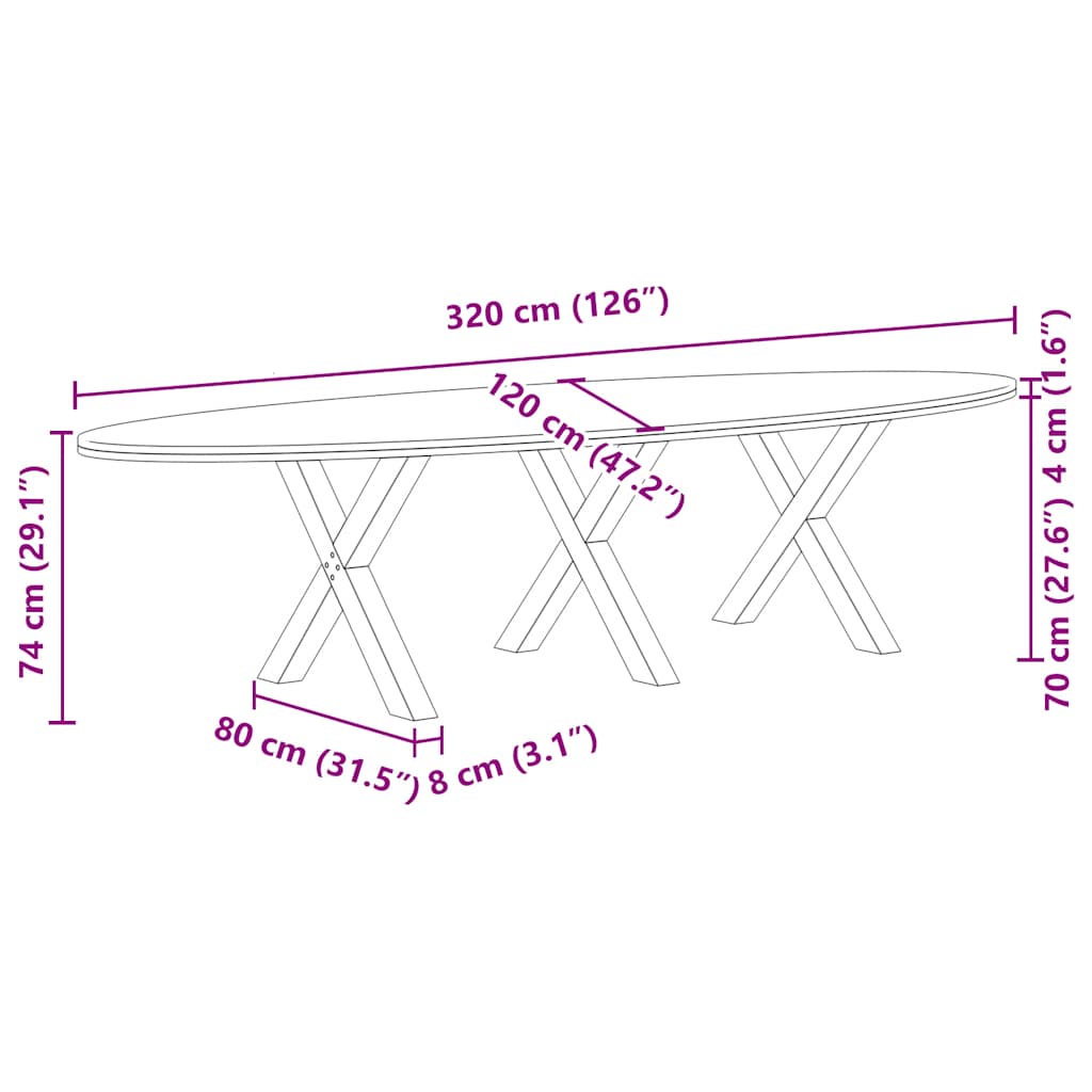 vidaXL Eettafel 280x120x74 cm ovaal massief eikenhout lichtbruin