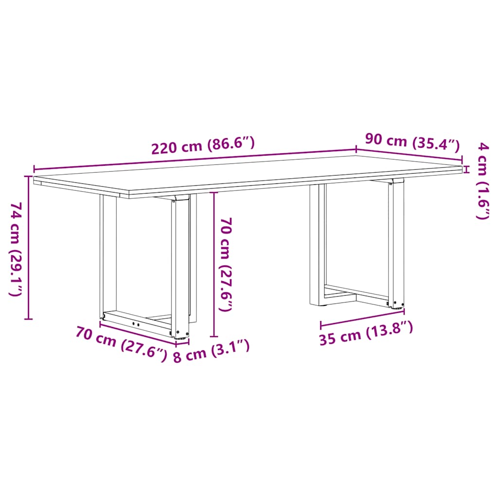 vidaXL Eettafel rechthoekig 240x90x74 cm massief eikenhout lichtbruin