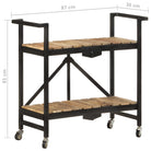 Deze keukentrolley is gemaakt van massief mangohout, een tropisch hardhout dat de kracht heeft om veel gewicht te dragen. Het is bestand tegen slijtage, waardoor de trolley stevig en duurzaam is. Het voortreffelijke vakmanschap en de prachtige houtnerven maken elk stuk uniek en net iets anders dan de rest. Het gepoedercoat stalen frame biedt extra stabiliteit. De keukentrolley heeft 2 schappen waarmee je eten, flessen en andere benodigdheden binnen handbereik kunt bewaren. Dankzij het inklapbare ontwerp kan je de trolley gemakkelijk opbergen wanneer hij niet in gebruik is. De keukenwagen is voorzien van flexibele wielen voor gemakkelijk verplaatsen.