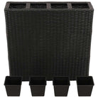 vidaXL Plantenbak verhoogd met 4 potten poly rattan zwart