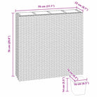 Deze plantenbak is gemaakt van duurzaam, waterbestendig rattan en is de perfecte aanvulling op je buitenruimte. De strakke weefstructuur zorgt voor een gladde afwerking en goede stabiliteit. De plantenset bestaat uit 4 kunststof potten waardoor de set een lange levensduur heeft. Je kunt allerlei levendige groene planten en bloemen netjes in de potten plaatsen. De levering bevat 1 plantenbak en 4 verwijderbare potten met dezelfde afmetingen.