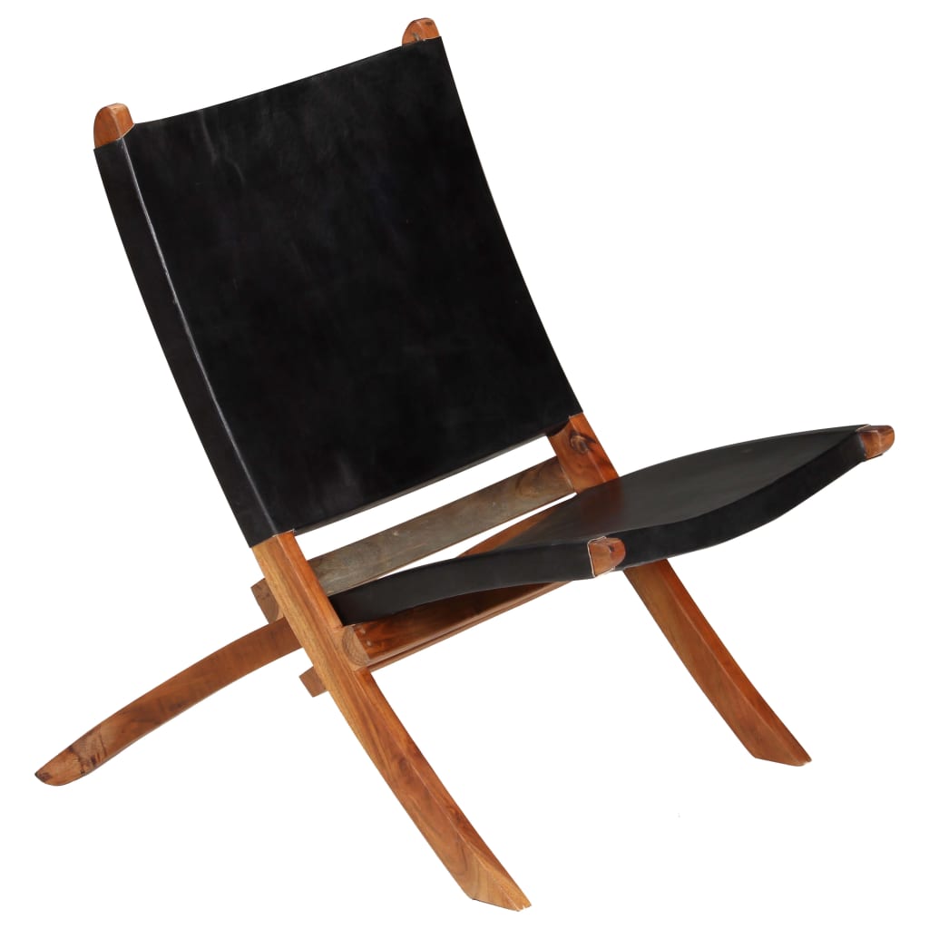 vidaXL Relaxstoel inklapbaar echt leer zwart