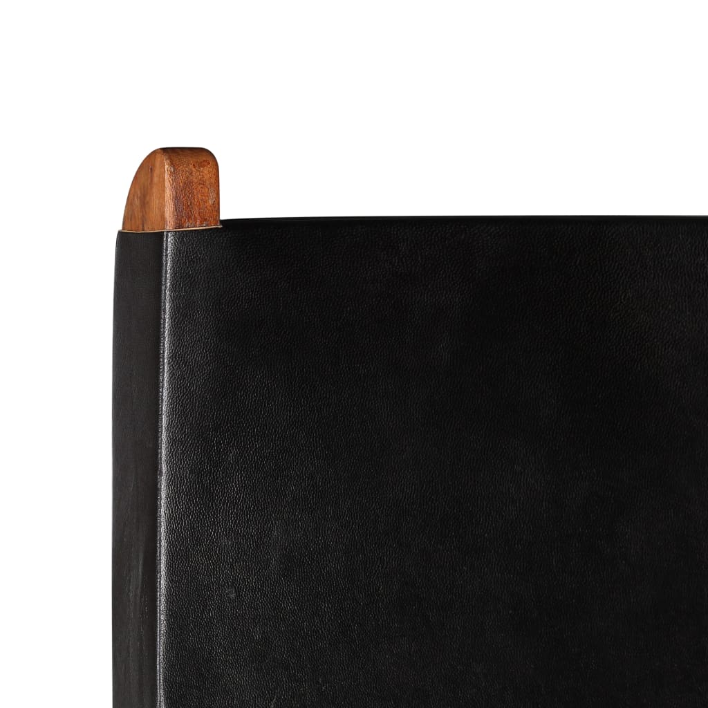 - Materiaal: echt geiten leren zitvlak en rugleuning en massief acaciahouten frame