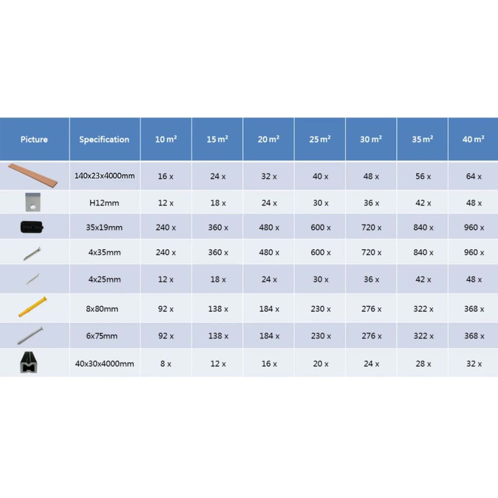 Deze complete HKC terrasplankenset met accessoires, met een totale oppervlakte van 35 vierkante meter, is perfect voor terrassen, balkons en de grond naast een zwembad of spa.