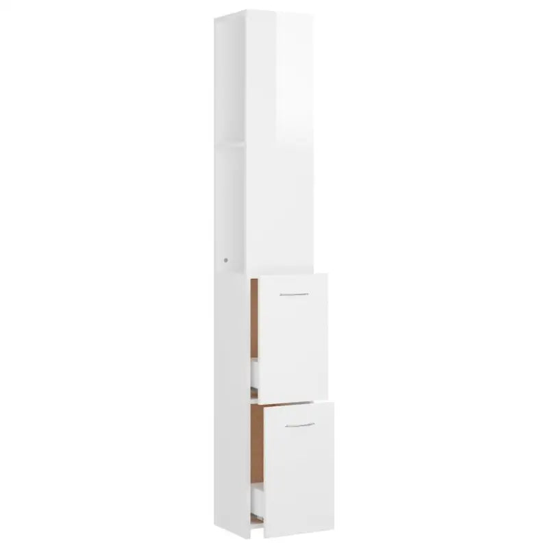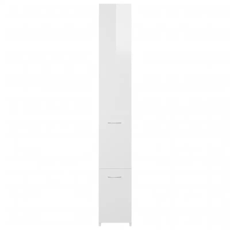 De kast is gemaakt van spaanplaat, dat robuust, duurzaam en gemakkelijk schoon te maken is. Door de strakke lijnen en het strakke ontwerp past hij perfect in je badkamer. De kast biedt veel opbergruimte, zodat je verschillende spullen eenvoudig kunt ordenen en je badkamer netjes en schoon kunt houden.