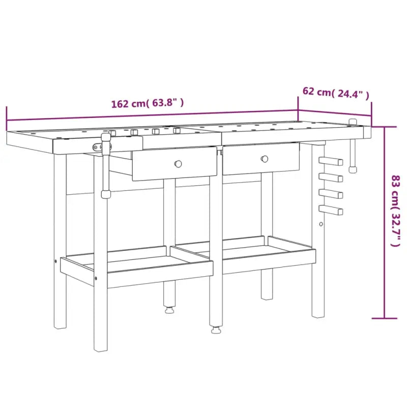 Deze houten werkbank is dankzij het sterke en stevige frame perfect voor elke klus in de garage, werkplaats of schuur.