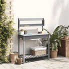 - Veelzijdige opbergruimte: de oppottafel heeft 2 schappen bovenin, 1 schap onderin en metalen haken aan de zijkant. Hij biedt dus voldoende ruimte voor je benodigdheden, zoals klein tuingereedschap, aarde, kunstmest, enz.