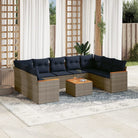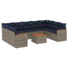 vidaXL 10-delige Loungeset met kussens poly rattan grijs