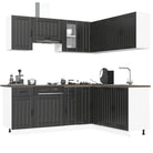 - Voldoende opbergruimte: de keukenkastenset heeft veel vakken en biedt voldoende ruimte om kommen, borden, potten en andere keukenapparatuur op te bergen.