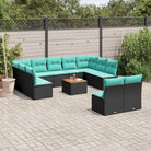 vidaXL 12-delige Loungeset met kussens poly rattan zwart