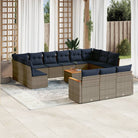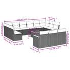 vidaXL 14-delige Loungeset met kussens poly rattan grijs