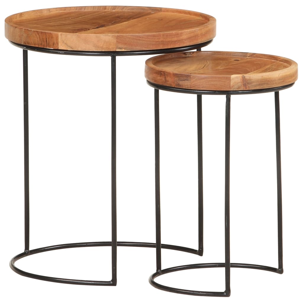 vidaXL 2-delige Salontafelset massief acaciahout en staal
