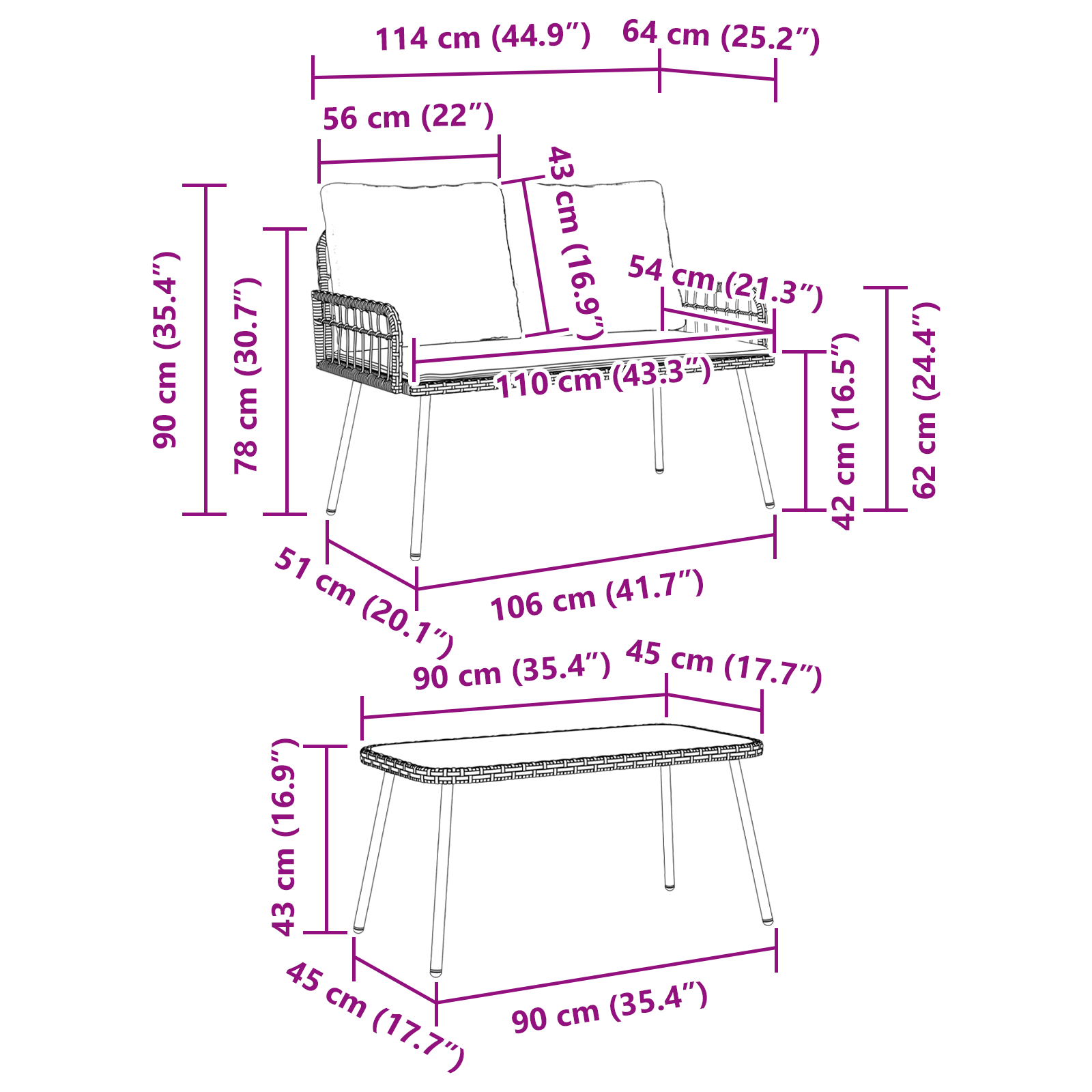 Deze 2-delige tuin eetset geeft een boost aan je buiten dineren met z'n moderne vibe en praktische gebruik. Gemaakt van stevig zwart poly rattan en zachte kussens, creëert het een warme sfeer, perfect voor het genieten van eten of relaxed momenten in tuinen, balkons of op terrassen.