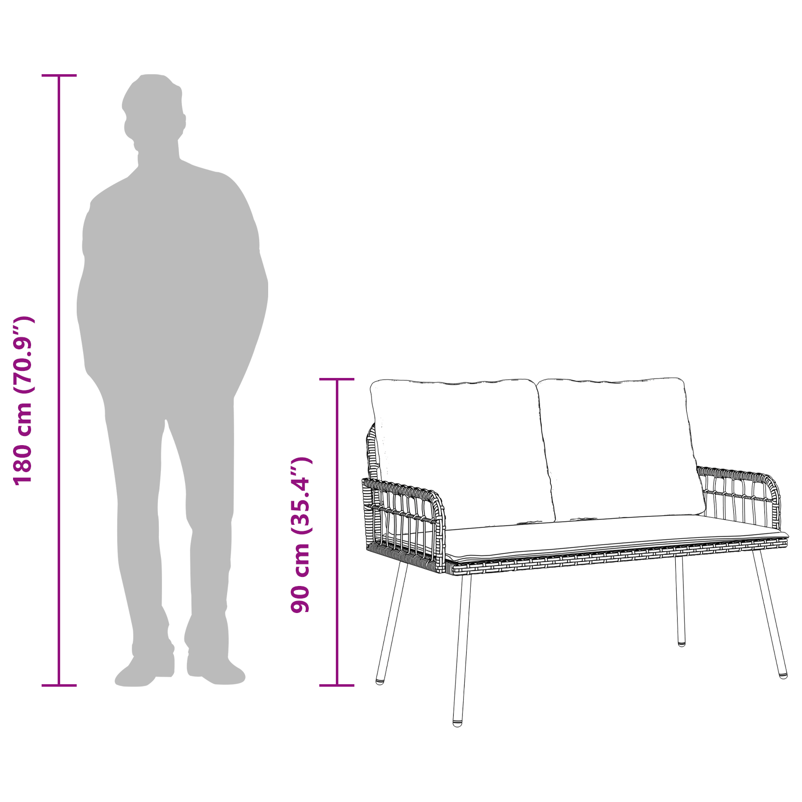 vidaXL 2-delige Tuinset met kussens poly rattan zwart