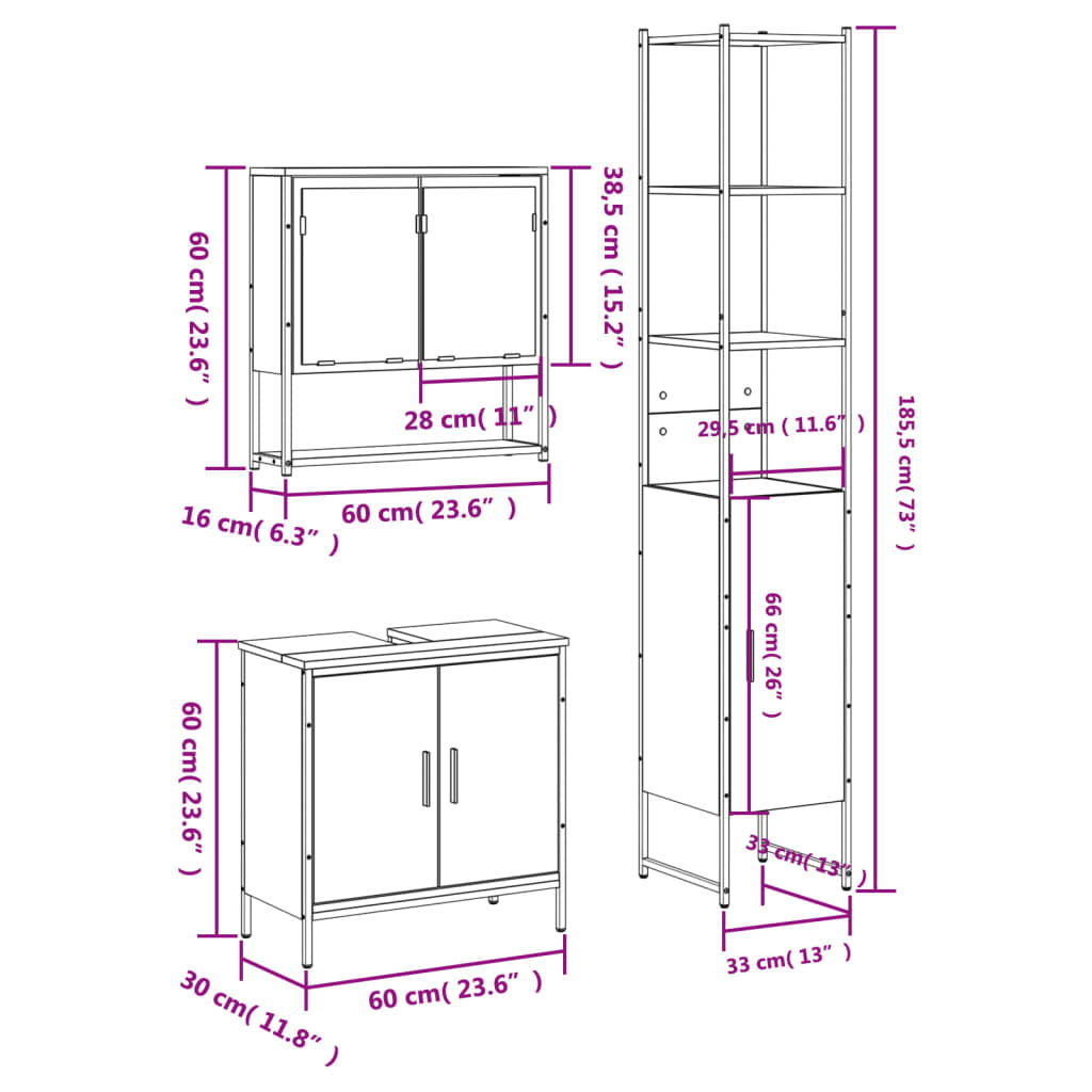 vidaXL 3-delige Badkamermeubelset bewerkt hout zwart