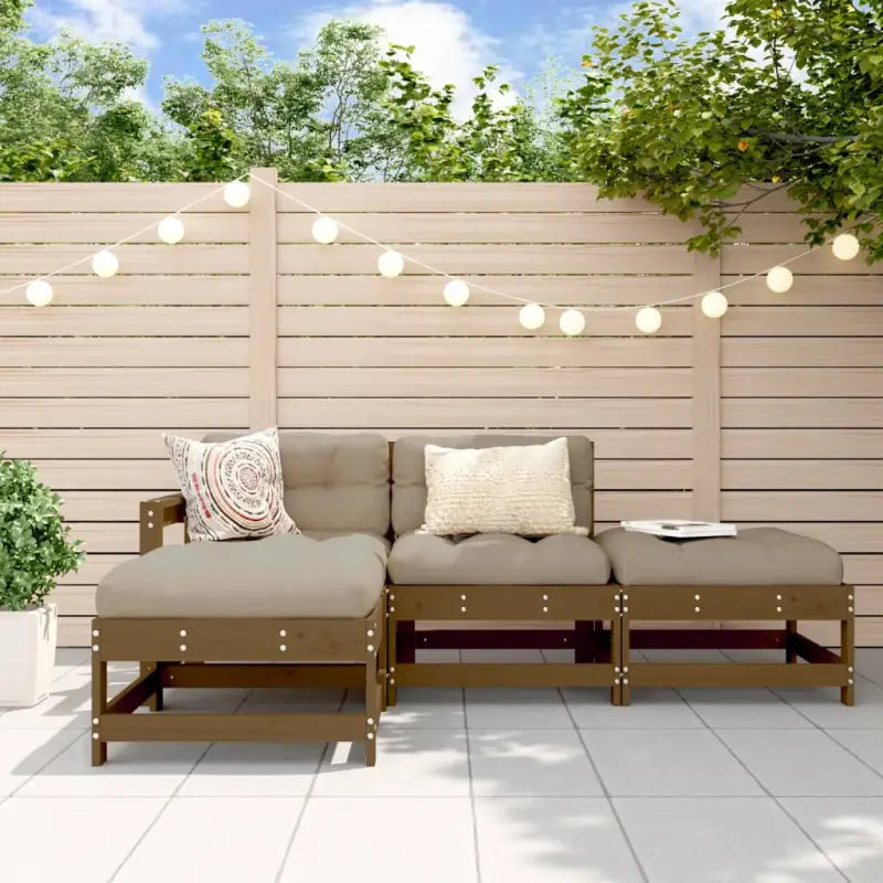 Houten loungeset met massief grenenhout en voetenbank salontafel