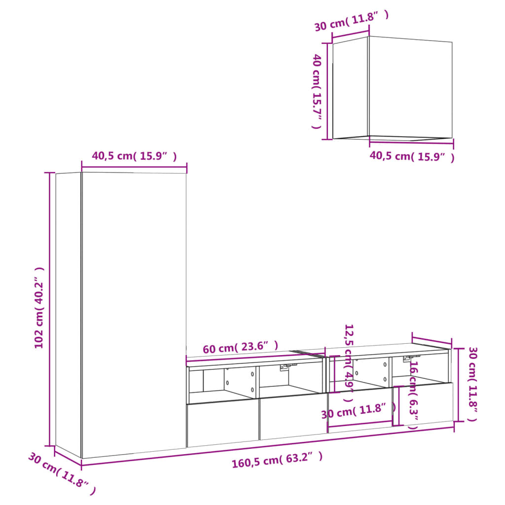vidaXL 4-delige Tv-wandmeubelset bewerkt hout bruin eikenkleur