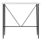 Het tafelblad is gemaakt van MDF, dat gemakkelijk te reinigen is. Het gepoedercoat stalen frame draagt bij aan de stabiliteit en robuustheid van de bartafel. De stoelen hebben een ergonomisch ontworpen zitting met geïntegreerde rugleuning in een moderne, gebogen look. Bovendien zijn ze eenvoudig te monteren.