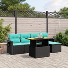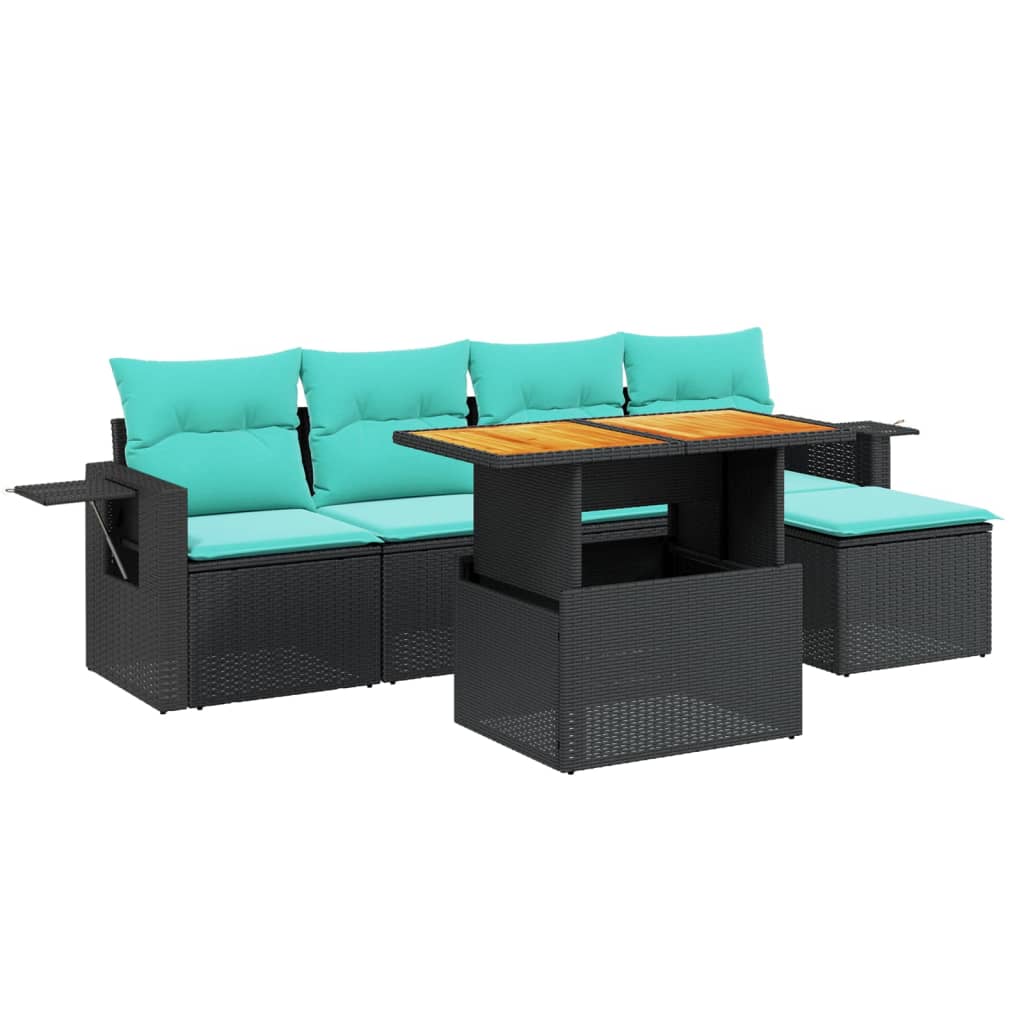 vidaXL 6-delige Loungeset met kussens poly rattan zwart