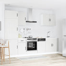 - Voldoende opbergruimte: de keukenkastenset heeft veel vakken en biedt voldoende ruimte om kommen, borden, potten en andere keukenapparatuur op te bergen.
