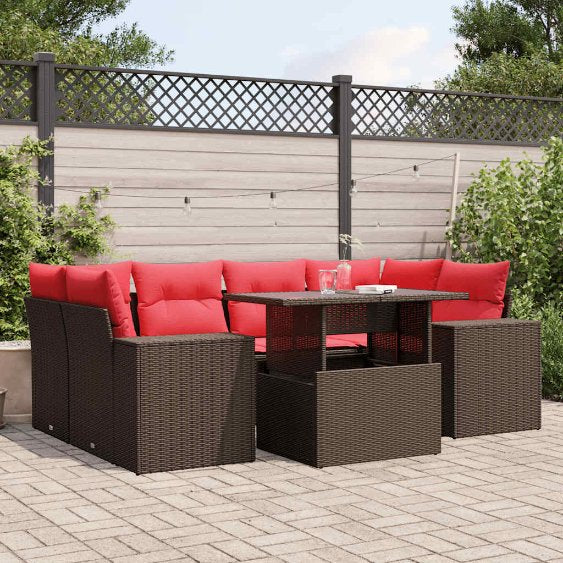 vidaXL 7-delige Loungeset met kussens poly rattan acacia bruin