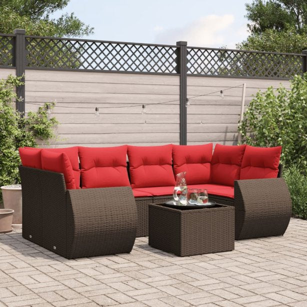 vidaXL 7-delige Loungeset met kussens poly rattan bruin