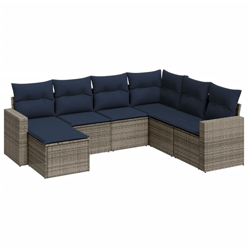 vidaXL 7-delige Loungeset met kussens poly rattan grijs