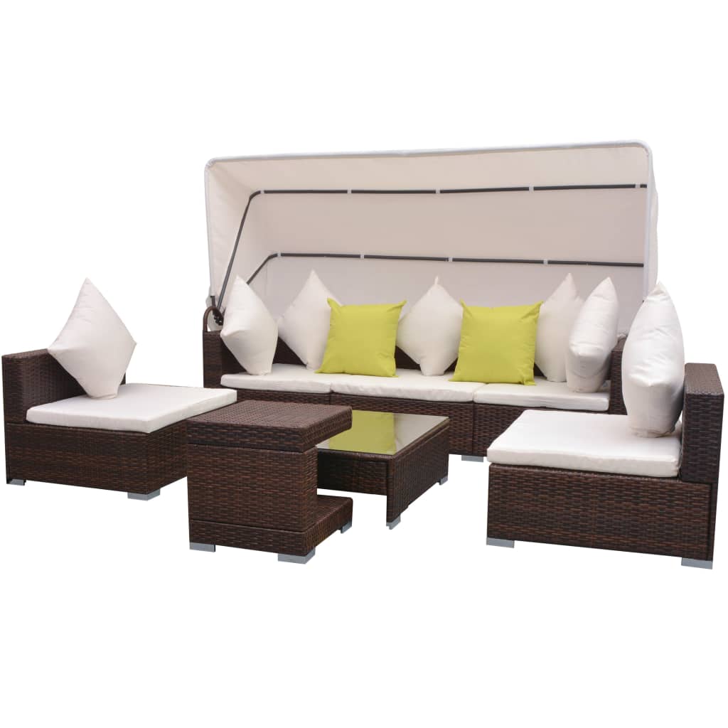 vidaXL 7-delige Loungeset met luifel poly rattan zwart