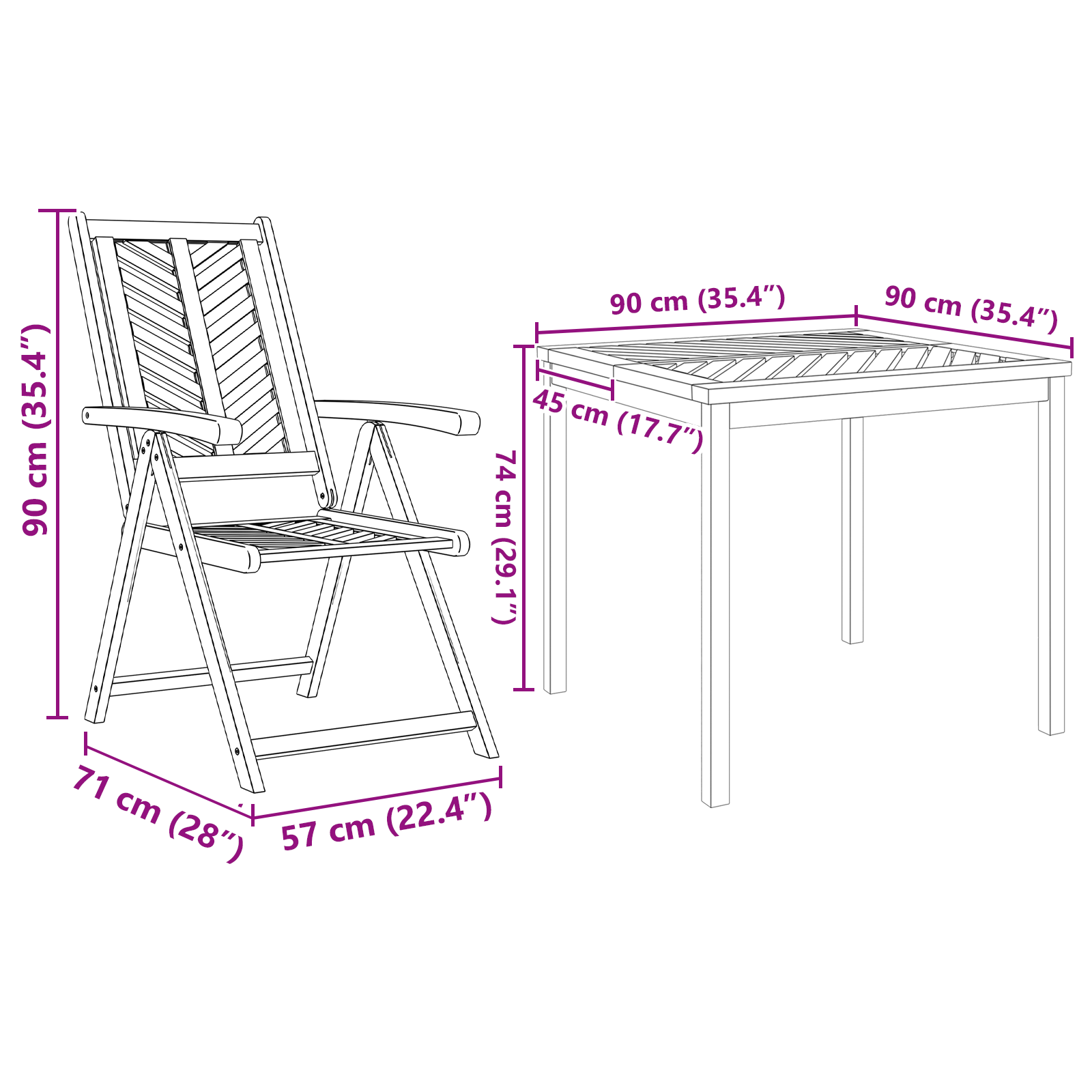 vidaXL 7-delige Tuin Eettafel Set Massief Hout Acacia