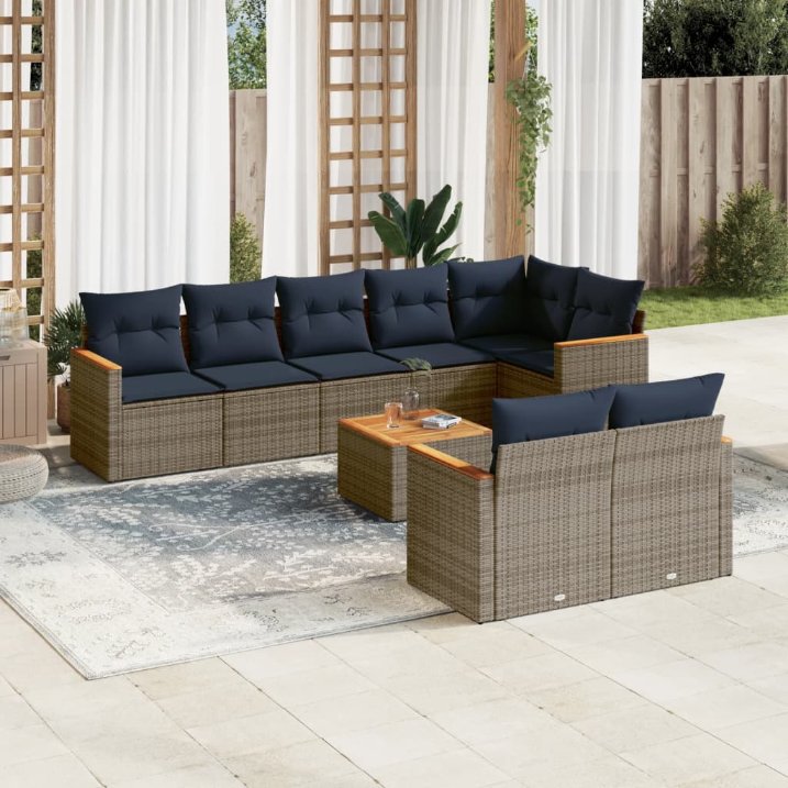 vidaXL 8-delige Loungeset met kussens poly rattan grijs