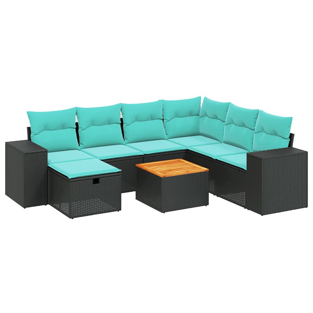 vidaXL 8-delige Loungeset met kussens poly rattan zwart