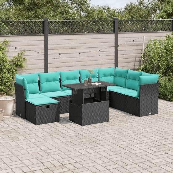 vidaXL 9-delige Loungeset met kussens poly rattan acacia grijs