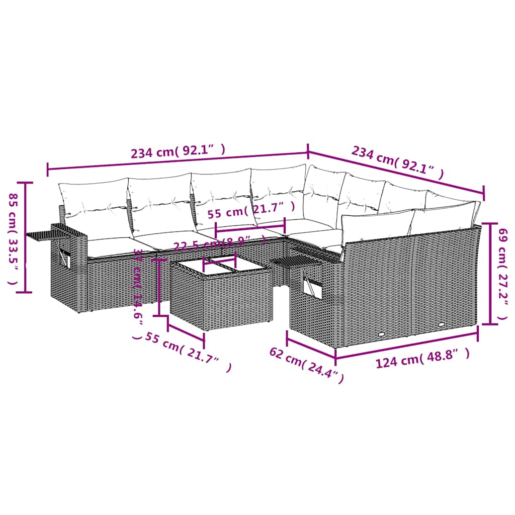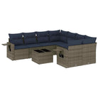 vidaXL 9-delige Loungeset met kussens poly rattan grijs