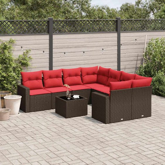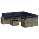 vidaXL 9-delige Loungeset met kussens poly rattan grijs