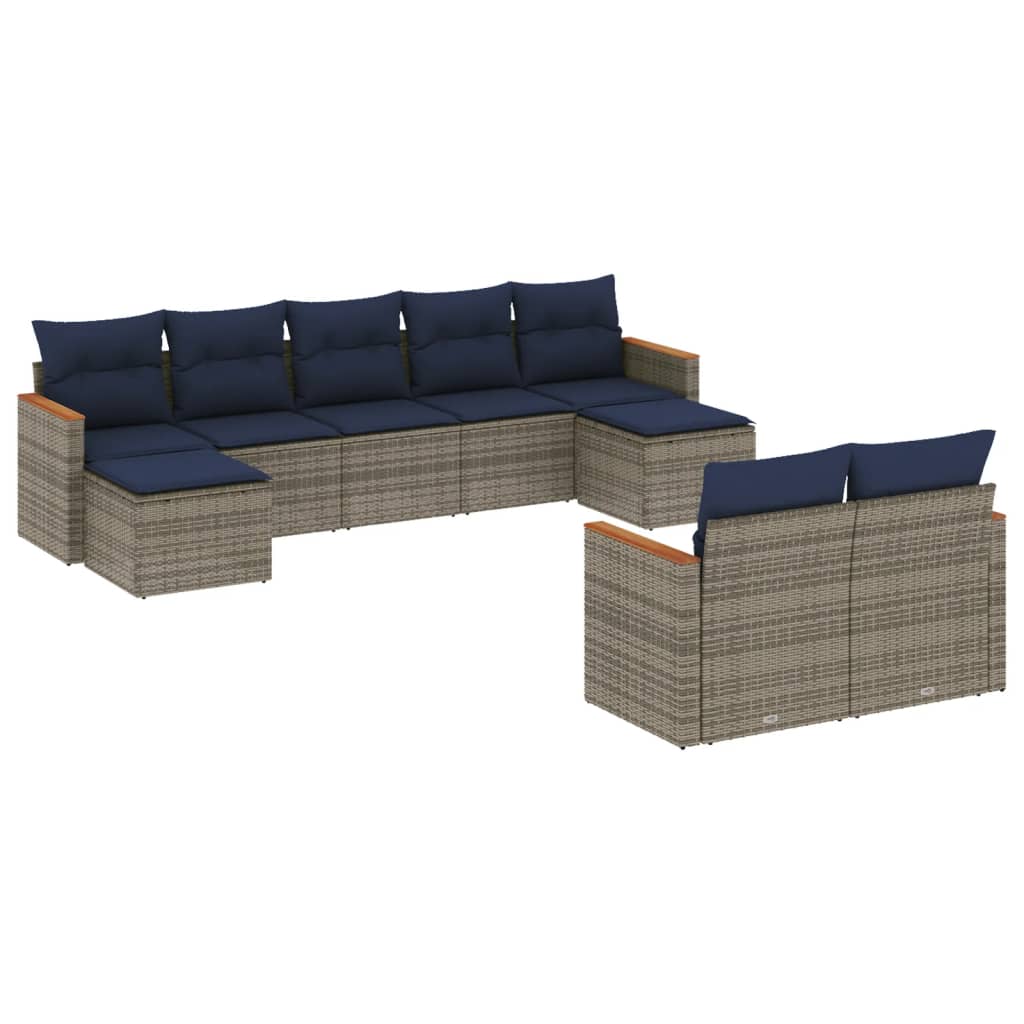 vidaXL 9-delige Loungeset met kussens poly rattan grijs