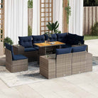 vidaXL 9-delige Loungeset met kussens poly rattan grijs
